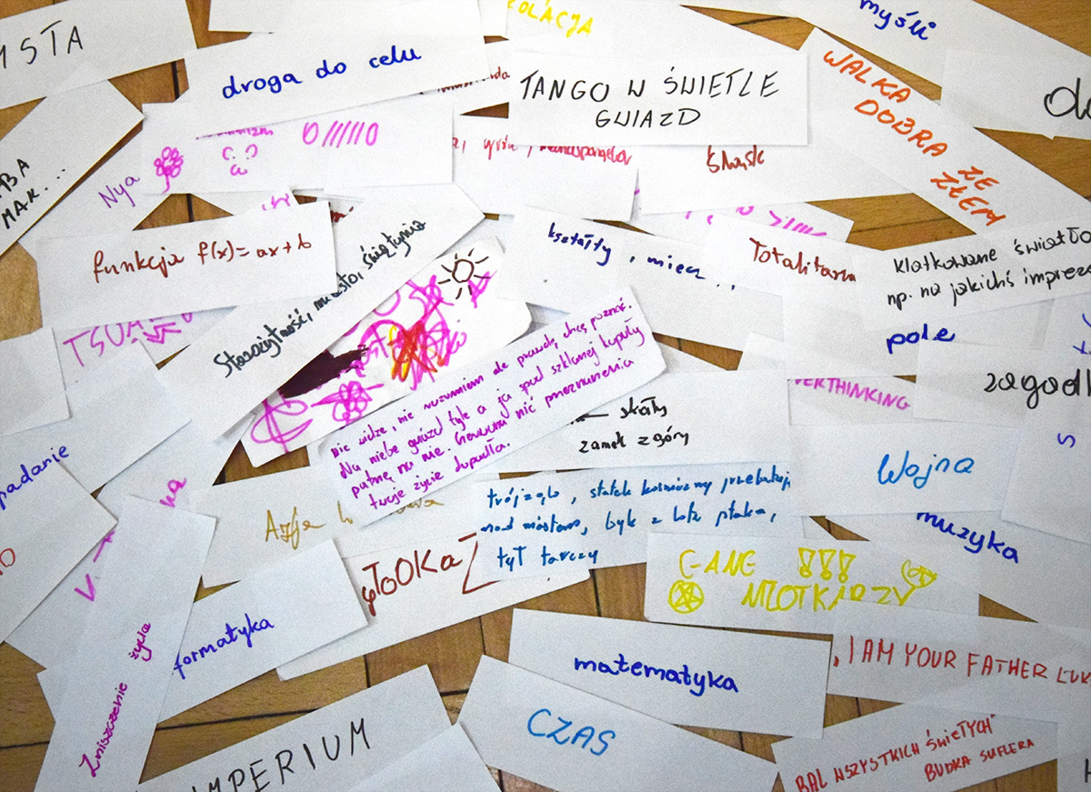 Innym zadaniem jest tworzenie efemerycznych kompozycji, wokół których powstają niesamowite opowieści inicjowane przez kilku autorów, a następnie rozwijane przez resztę grupy. Czasami, poprzez dobór elementów, prezentowane jest hasło (emocja, zjawisko, idea), które należy później odgadnąć i wspólnie zinterpretować.