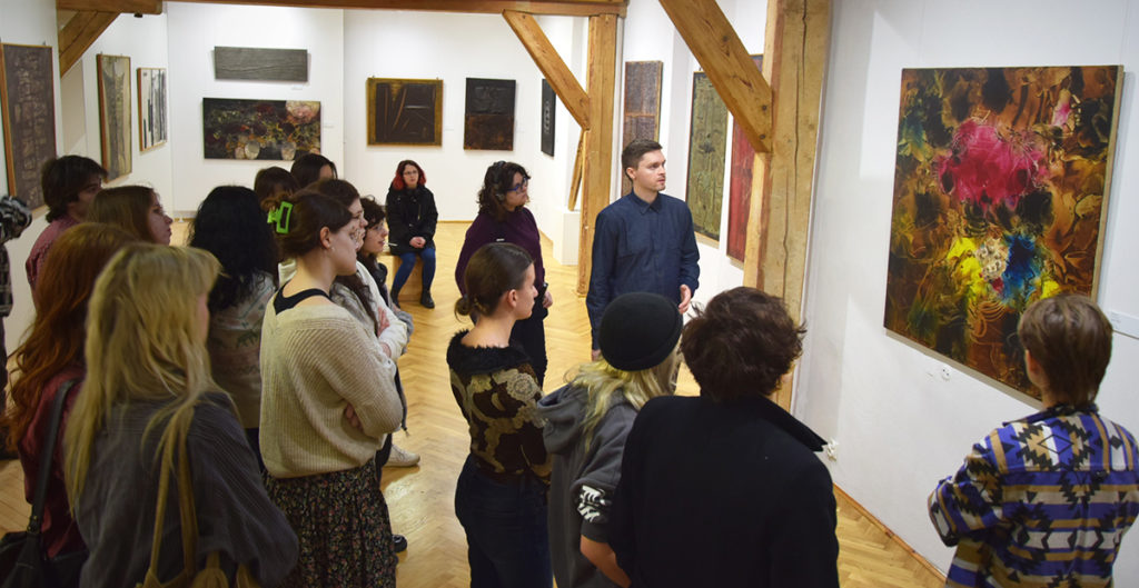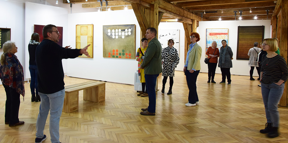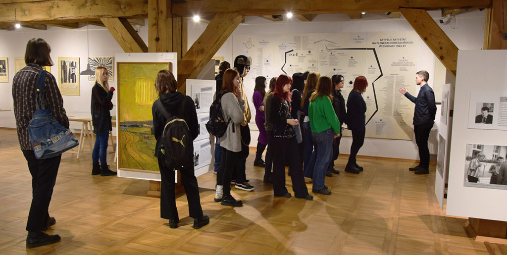 Znakomitym uzupełnieniem zajęć warsztatowych są oprowadzania kuratorskie. Zwiedzanie wystawy z osobą, która jest odpowiedzialna za całokształt wystawy, wybór prac i sposób ich prezentacji, a dodatkowo zwraca uwagę na szczegóły, dzieli się ciekawostkami i osadza dane zjawiska w szerszym kontekście, ułatwia zrozumienie i umożliwia głębszy odbiór ekspozycji. Kurator chętnie i wyczerpująco odpowiada na pytania, co gwarantuje zdobycie szerokiej wiedzy i informacji o dziełach, autorach i zjawiskach obecnych w polskiej sztuce w tamtym okresie. Przedstawia również historię i kulisy organizacyjne ówczesnych Plenerów w Osiekach oraz wyjaśnia na czym polegał ich fenomen.