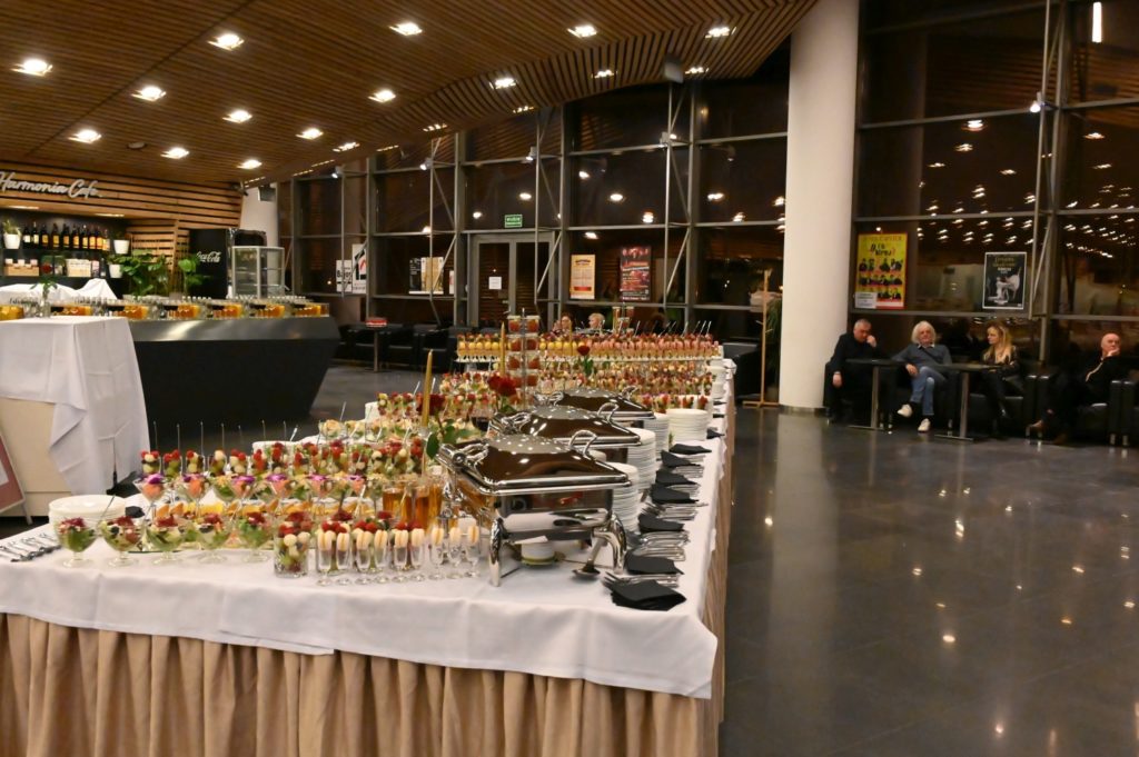 Przepiękną oprawę muzyczną zapewnił zespół Leszek Kułakowski Trio, który zaprezentował utwory Krzysztofa Komedy. Następnie w foyer, przy wykwintnych daniach i przekąskach Arcycateringu Baru Przerwa, toczyły się długie i ciekawe rozmowy z plenerowiczami, artystami i miłośnikami sztuki.