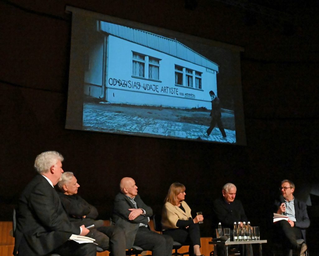 Prof. Józef Robakowski zaprezentował historię swojej drogi artystycznej. Podkreślał przy tym znaczenie plenerów dla zawiązywania się trwałych relacji między artystami (często posługującymi się innymi językami sztuki: malarstwa, filmu, performansu), które owocowały wspólnymi przedsięwzięciami artystycznymi: filmami, publikacjami, wystawami. W Osiekach powstało wiele koncepcji, które urzeczywistniły się już po zakończeniu plenerów. Wskazał też na hipotetyczną możliwość znalezienia podobnej formuły spotkań artystycznych w przyszłości i dotyczącej już innego pokolenia twórców. Mogliśmy również obejrzeć film autorstwa prof. Robakowskiego „O palcach”, który powstał podczas ostatniego Pleneru w Osiekach w 1981 roku.