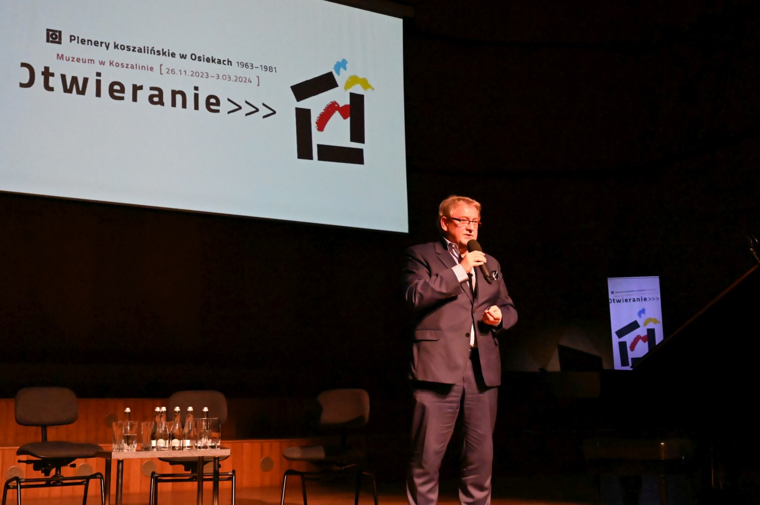 Otwarcie wystawy „Otwieranie. Plenery koszalińskie w Osiekach 1963-1981” odbyło się w dość nietypowy sposób – podczas uroczystej gali w Filharmonii Koszalińskiej. Ze względu na to, że Muzeum nie dysponuje przestrzenią recepcyjną i nie mogłoby pomieścić w swoim gmachu wszystkich zaproszonych gości, zrezygnowano z tradycyjnego wernisażu.
